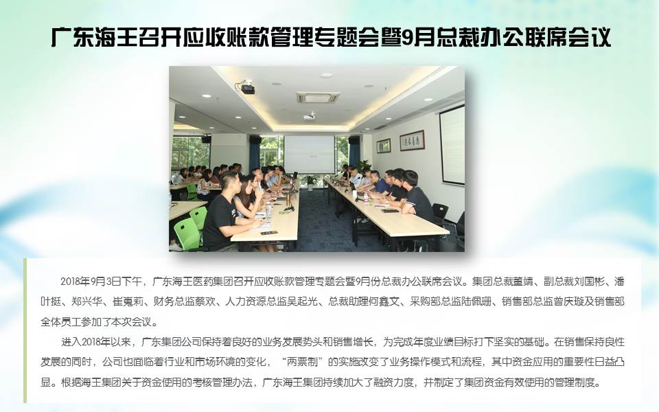 广东海王召开应收账款管理专题会暨9月总裁办公联席会议