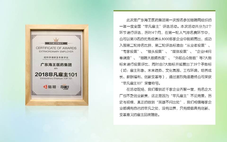 广东海王医药集团获得猎聘网“非凡雇主”荣誉