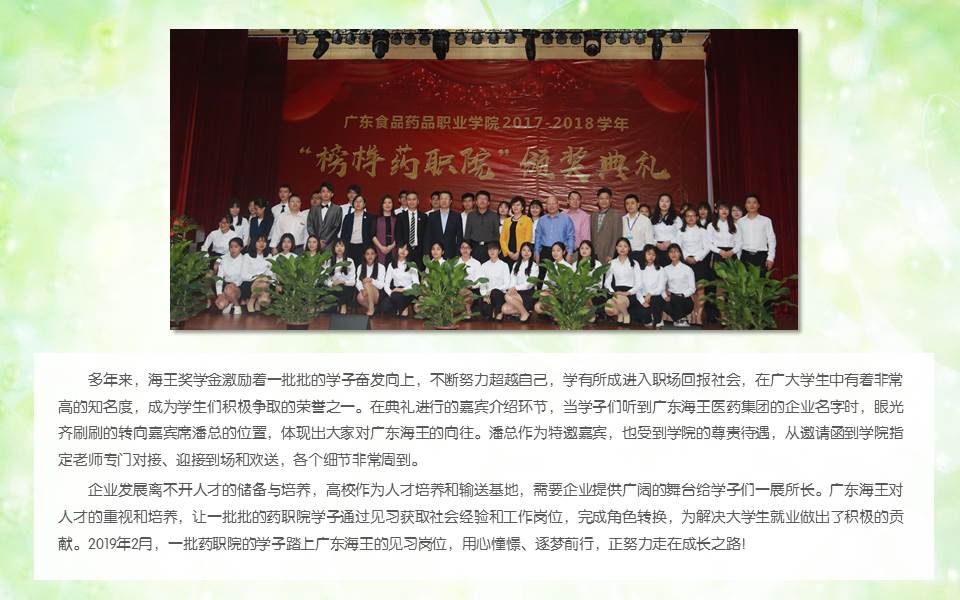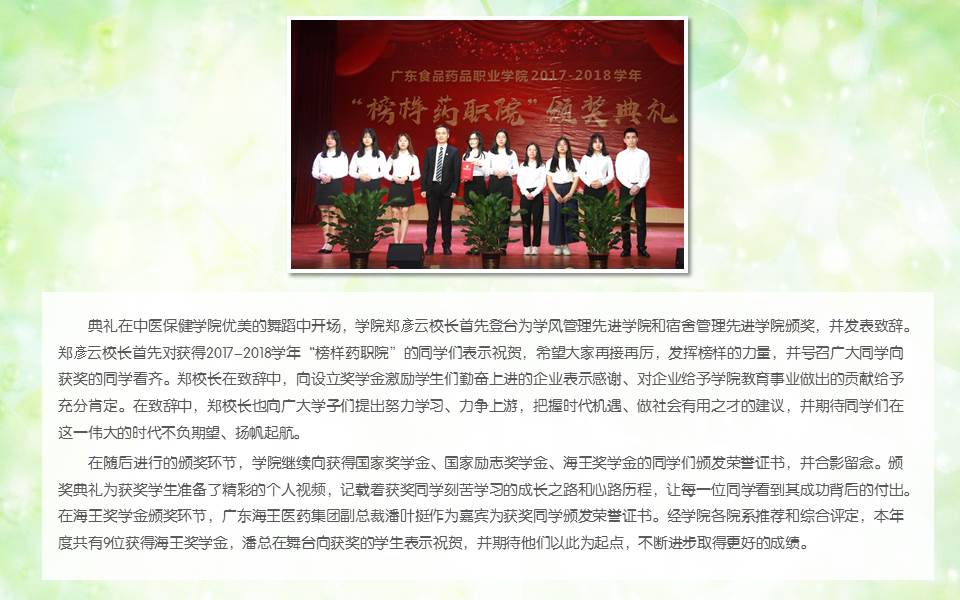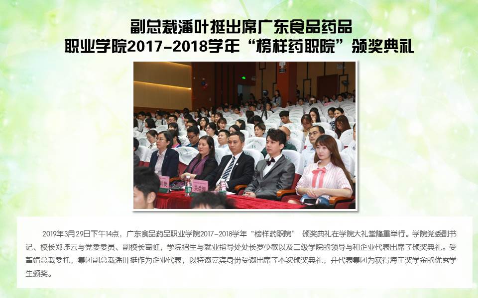 副总裁潘叶挺出席广东食品药品职业学院2017-2018学年“榜样药职院”颁奖典礼